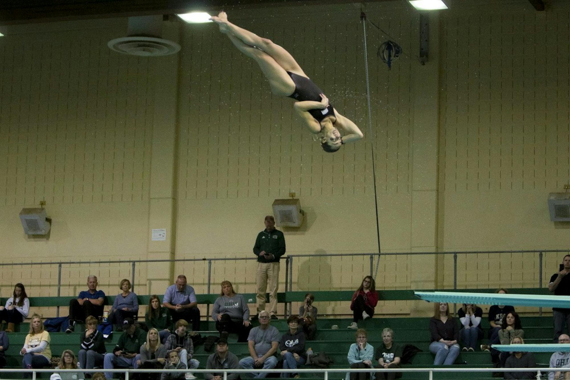 Lahtinen, who swims breaststroke, has finished in the top two in the majority of her solo races this year. Miller has performed well in all of Ohio’s meets but was particularly good against Akron, finishing second in both the one and three-meter dives.
