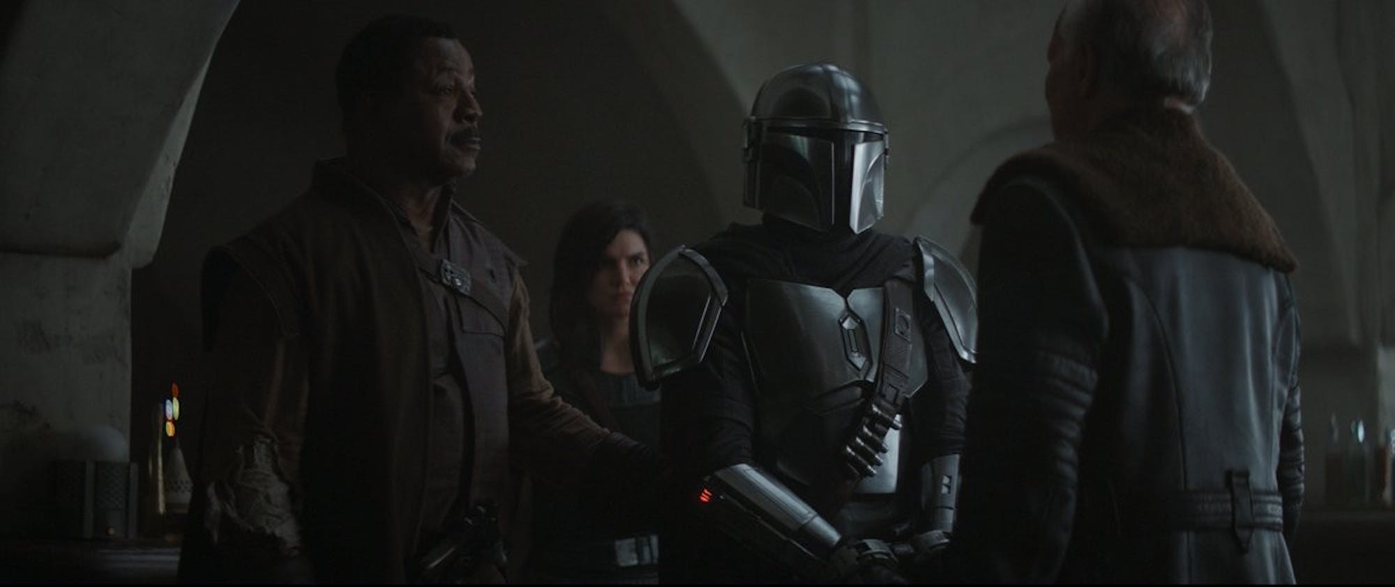 As briefly hinted in the previous episode, Mando (Pedro Pascal) receives a transmission from Greef Karga (Carl Weathers). He has a plan to kill the Imperial-affiliated client (Werner Herzog) and free his town, however, and negotiates with Mando to help set it in motion.