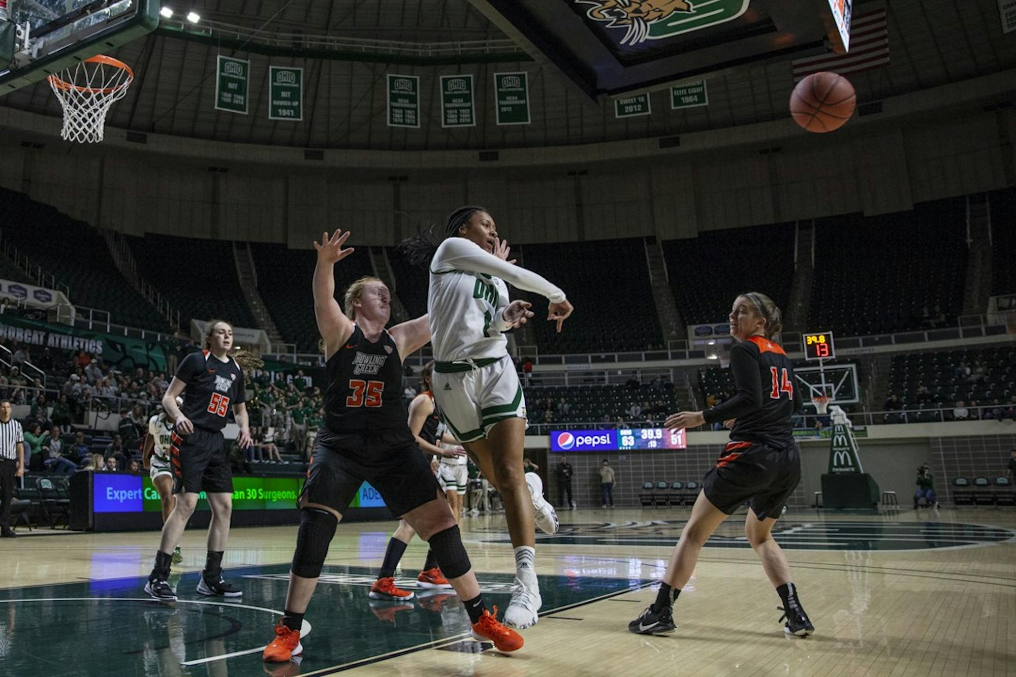 The only time the Bobcats didn’t lead was the eight seconds before they were able to score. After those seconds ticked off and Katie Barker hit a 3-pointer off an assist from Hooks, the scoring was on. Ohio started the game with nine straight points and Bowling Green didn’t even score until the 6:11 mark in the first quarter.