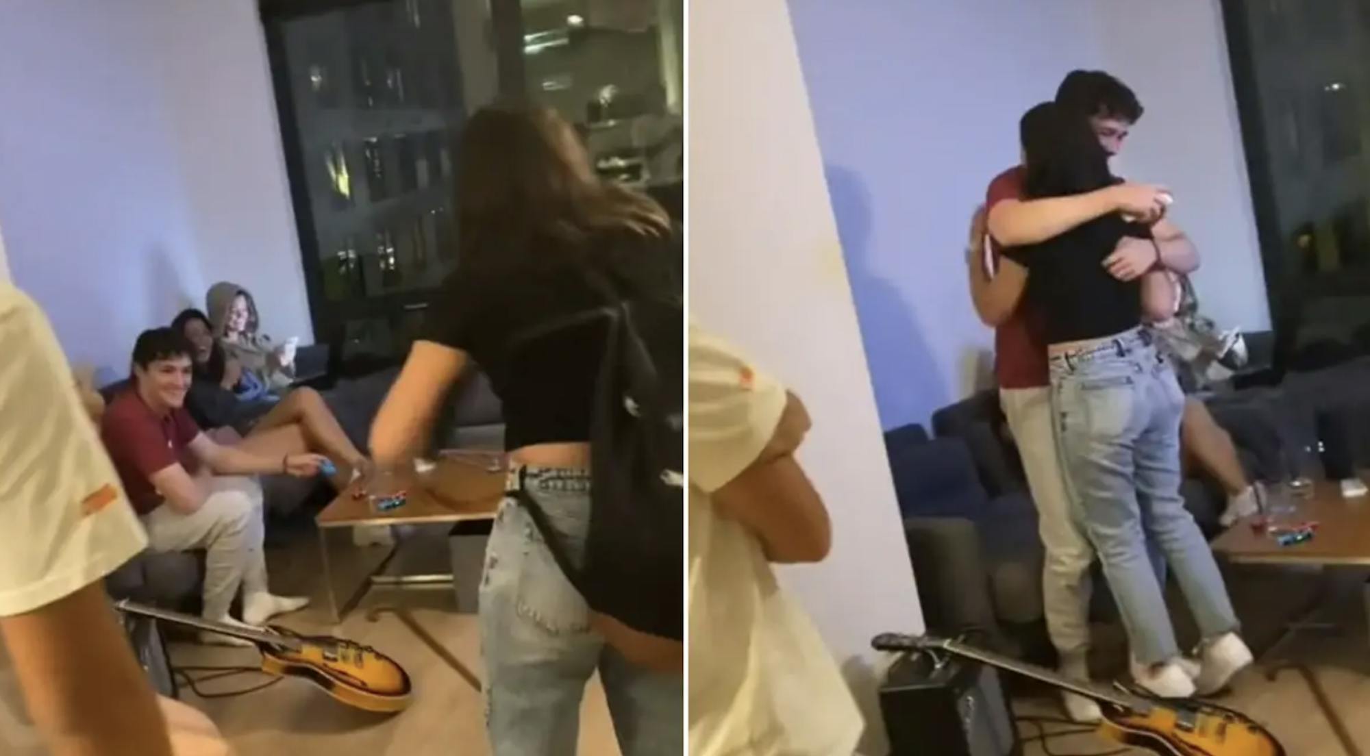In this instance of “surprising my significant other” @ethanckelly posted a sweet reunion captioned “surprising my boyfriend at Harvard after 6 months of being away from each other.” The best part of the video was when the boyfriend came out wearing a Stanford sweatshirt and a “mosquito bite,” as many of the comments called it, on his neck. Nobody ran behind him; it was probably just a ghost!