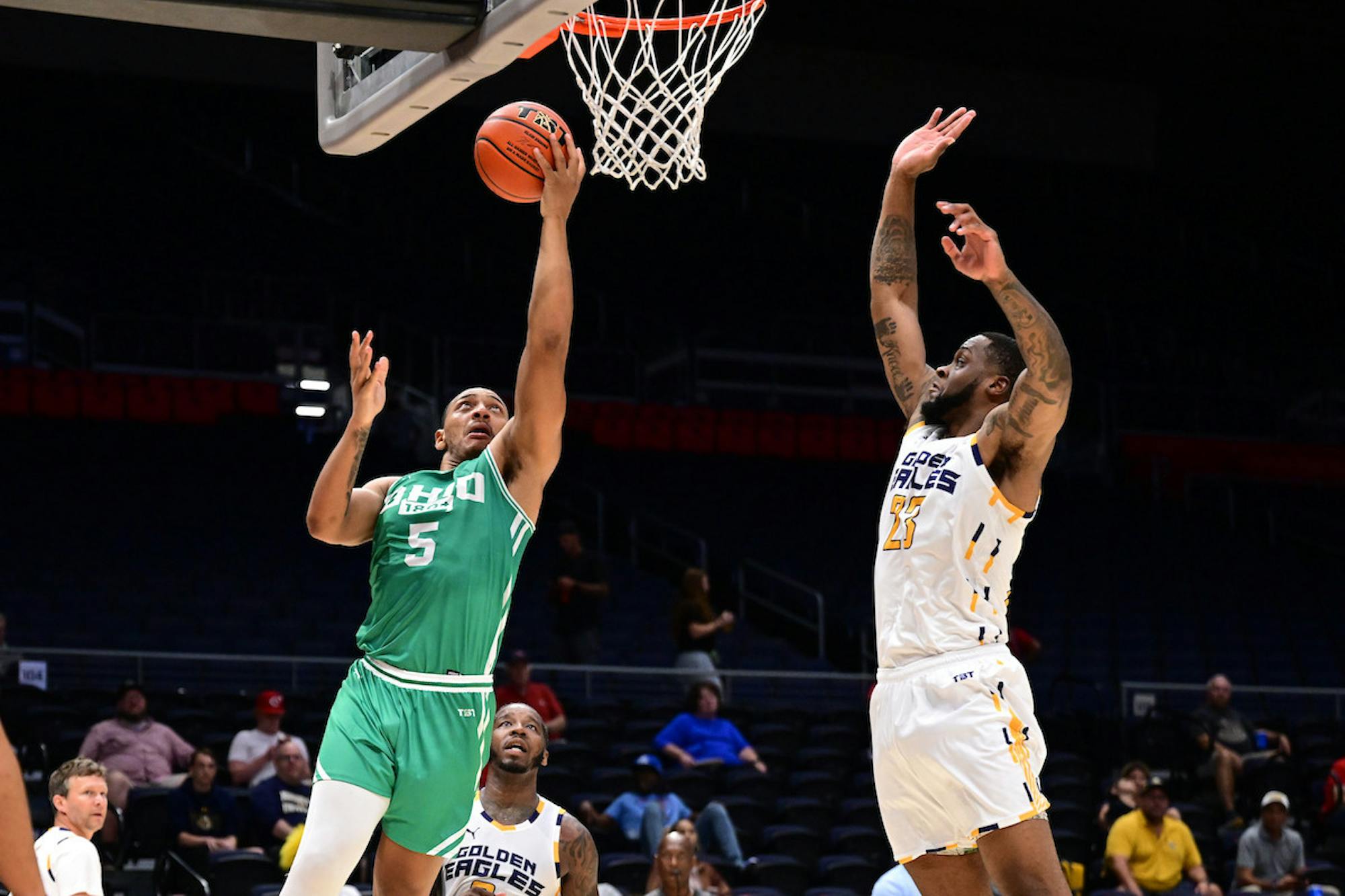 The crowd roared as Ohio 1804 earned possessions to keep the Golden Eagles from scoring the magic point. However, the arena fell silent after the ball left Elgin Cook’s hand and swished through the net to give the Golden Eagles a 77-72 victory.