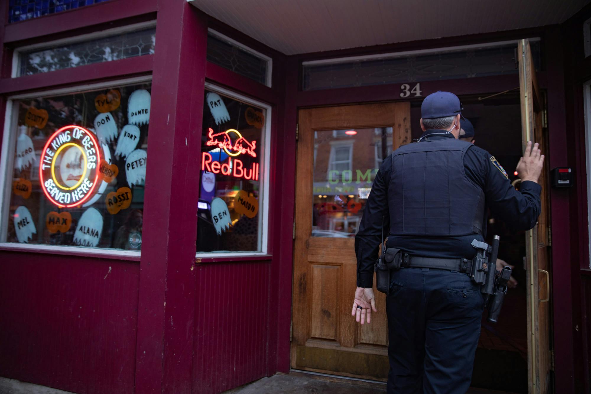 Around 8:30 p.m., more people began to flock toward Court Street. Bouncers of bars started to stand outside the bars in preparation.