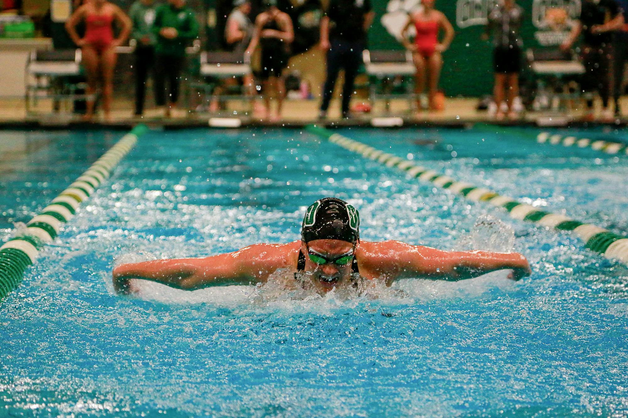 The Ohio Unversity swim team competes against Bowling Green at Jan. 16, 2026, at the Aquatic Center.
