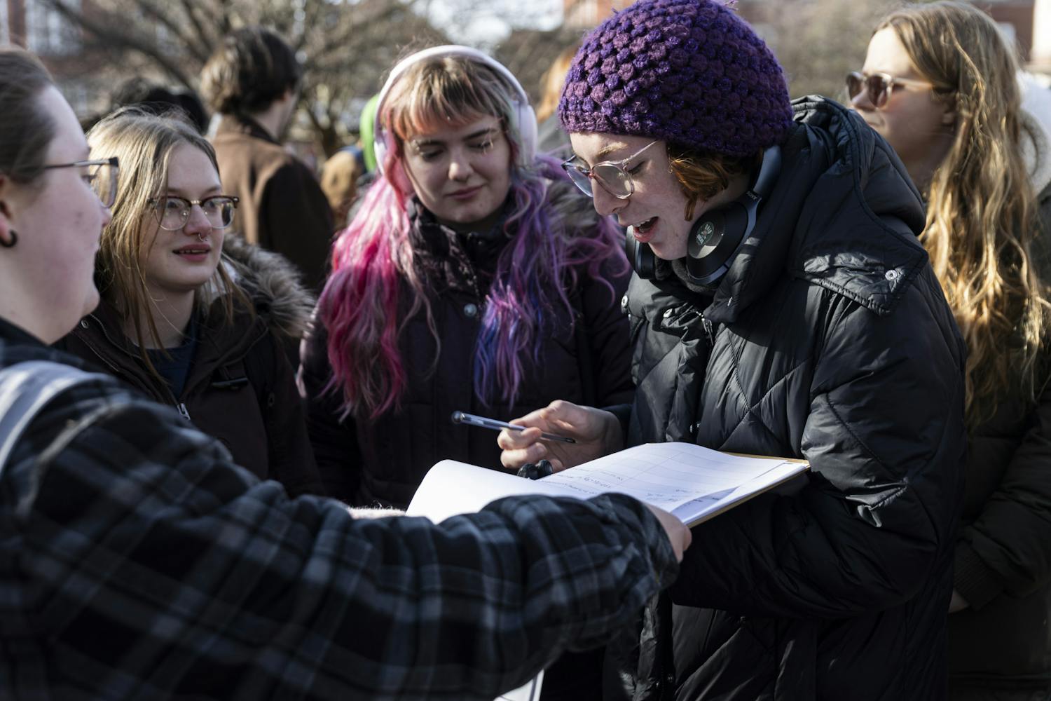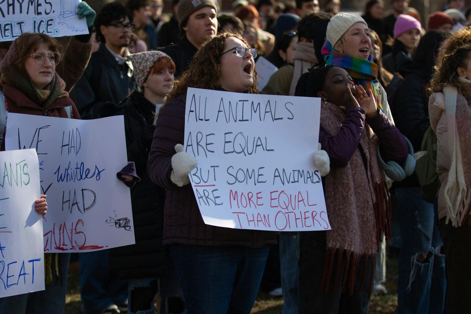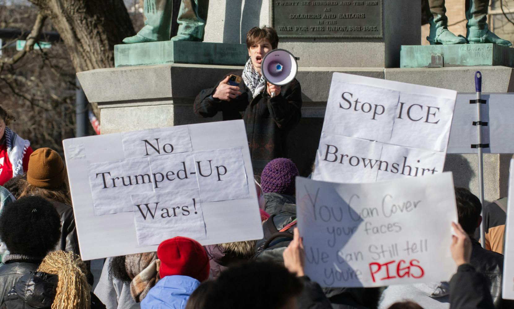 The rally was held on College Green, the epicenter of university activities and within sight of Cutler Hall, which houses the Office of the President.