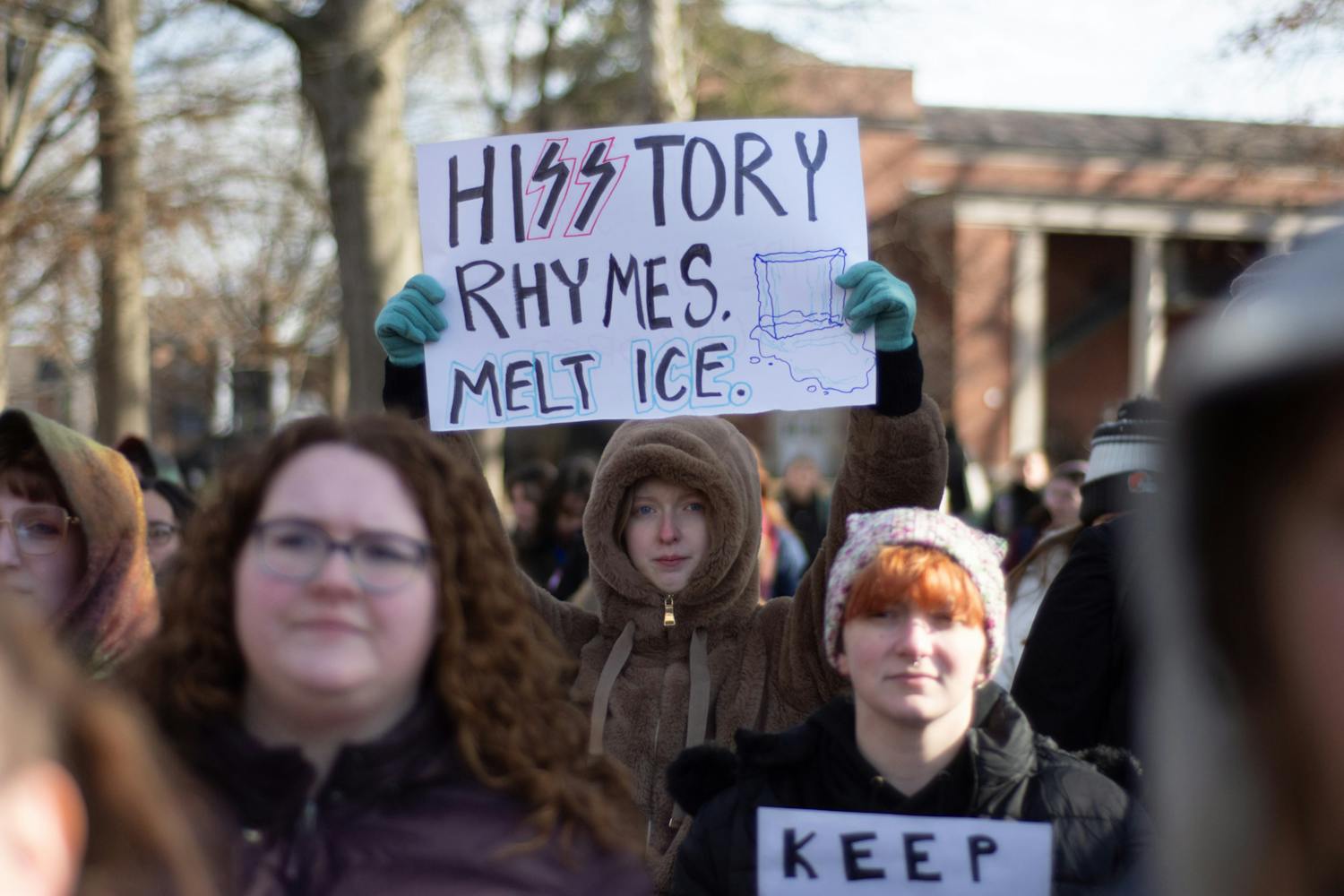 Hundreds of students walked out of class Friday afternoon and gathered on College Green in protest of nationwide U.S. Immigration and Customs Enforcement activity. The rally, organized by Ohio University’s Ohio Student Association chapter, called on university administration to respond to student concerns about the potential presence of ICE on campus.