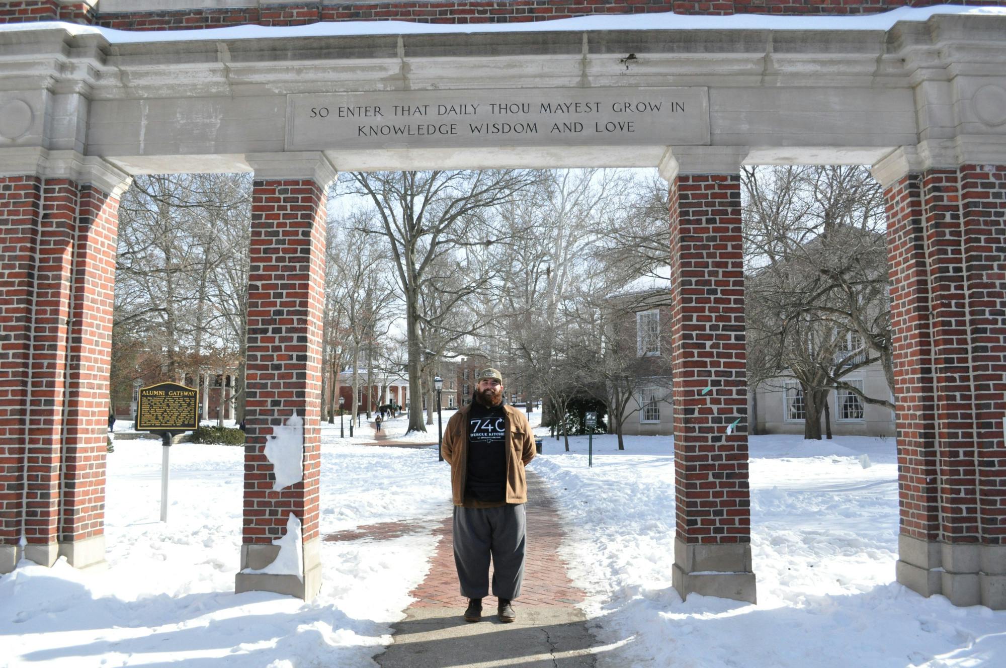 “Always Athens” podcast host Tyler Wurth in front of the Alumni Gateway, Jan. 30th, 2026, in Athens.