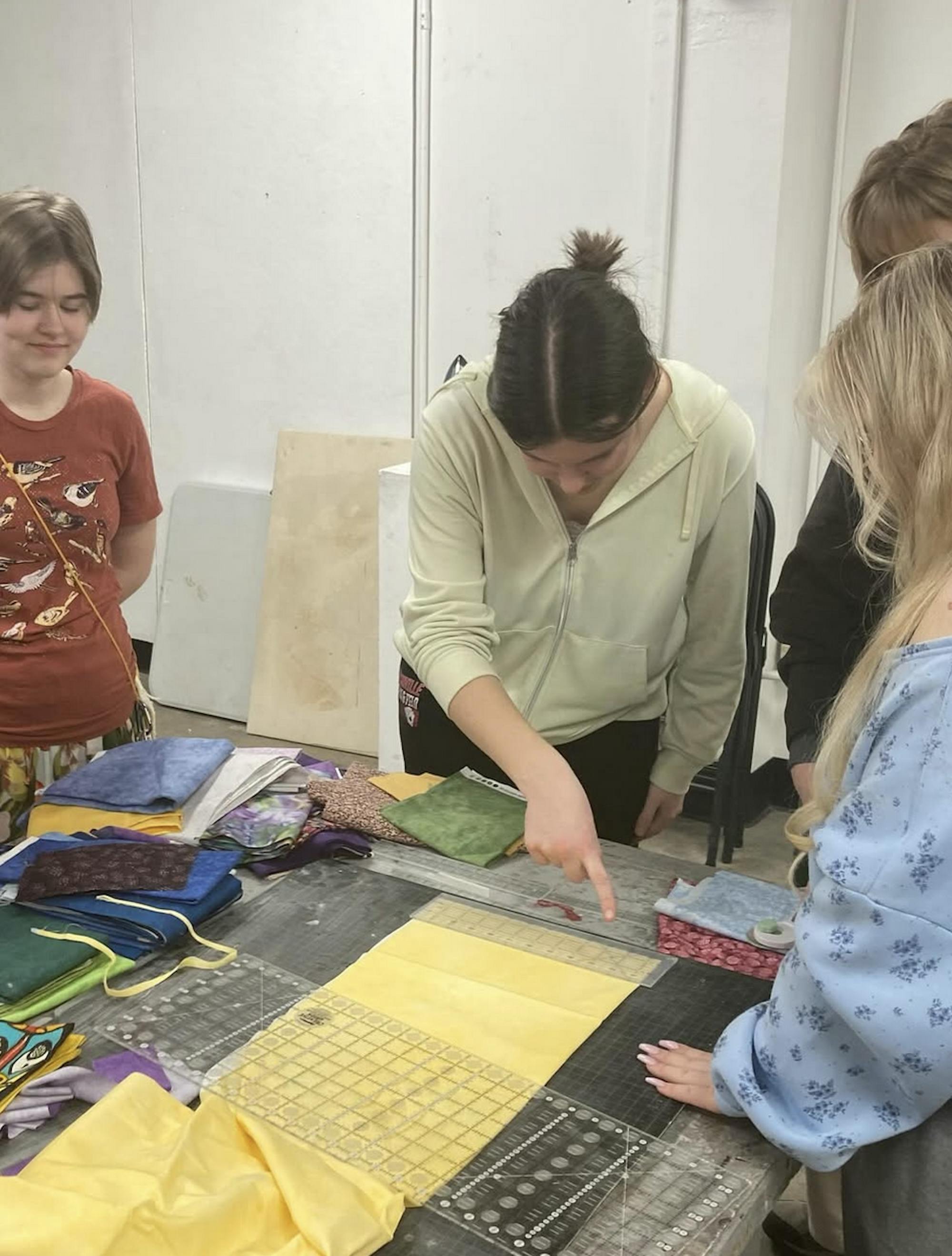 The focus on accessibility shaped not only the club’s identity, but also the current semester project the club adopted. The Fiber Arts Club recently began a new semester-long, collaborative quilt-making project. Created alongside a local quilter and professor, the project aims to capture the club's identity.