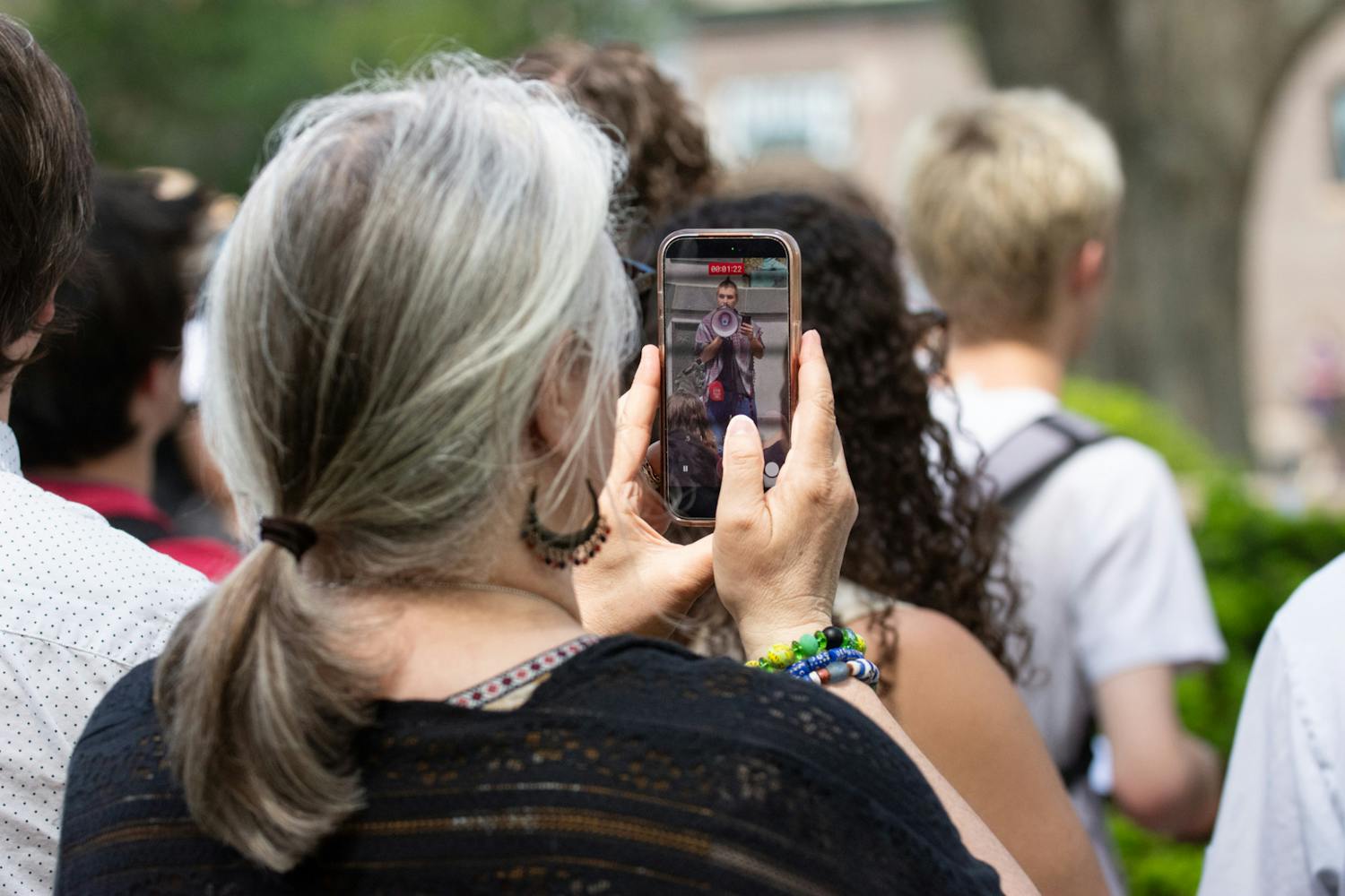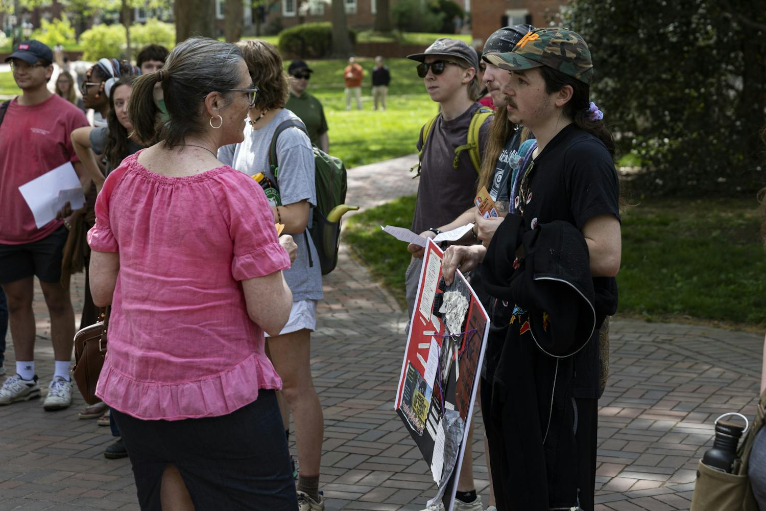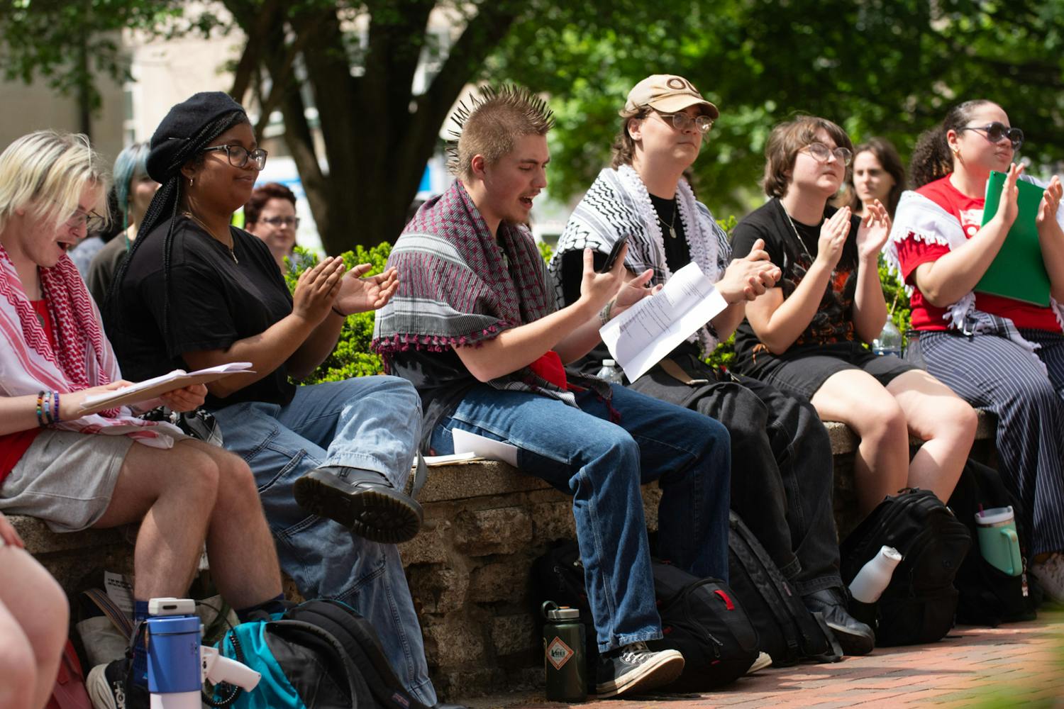 As the demonstration continued, chants and songs echoed across College Green while speakers from multiple organizations reiterated concerns about transparency, ongoing legal challenges involving the faculty union and the administration’s response to immigration enforcement issues.