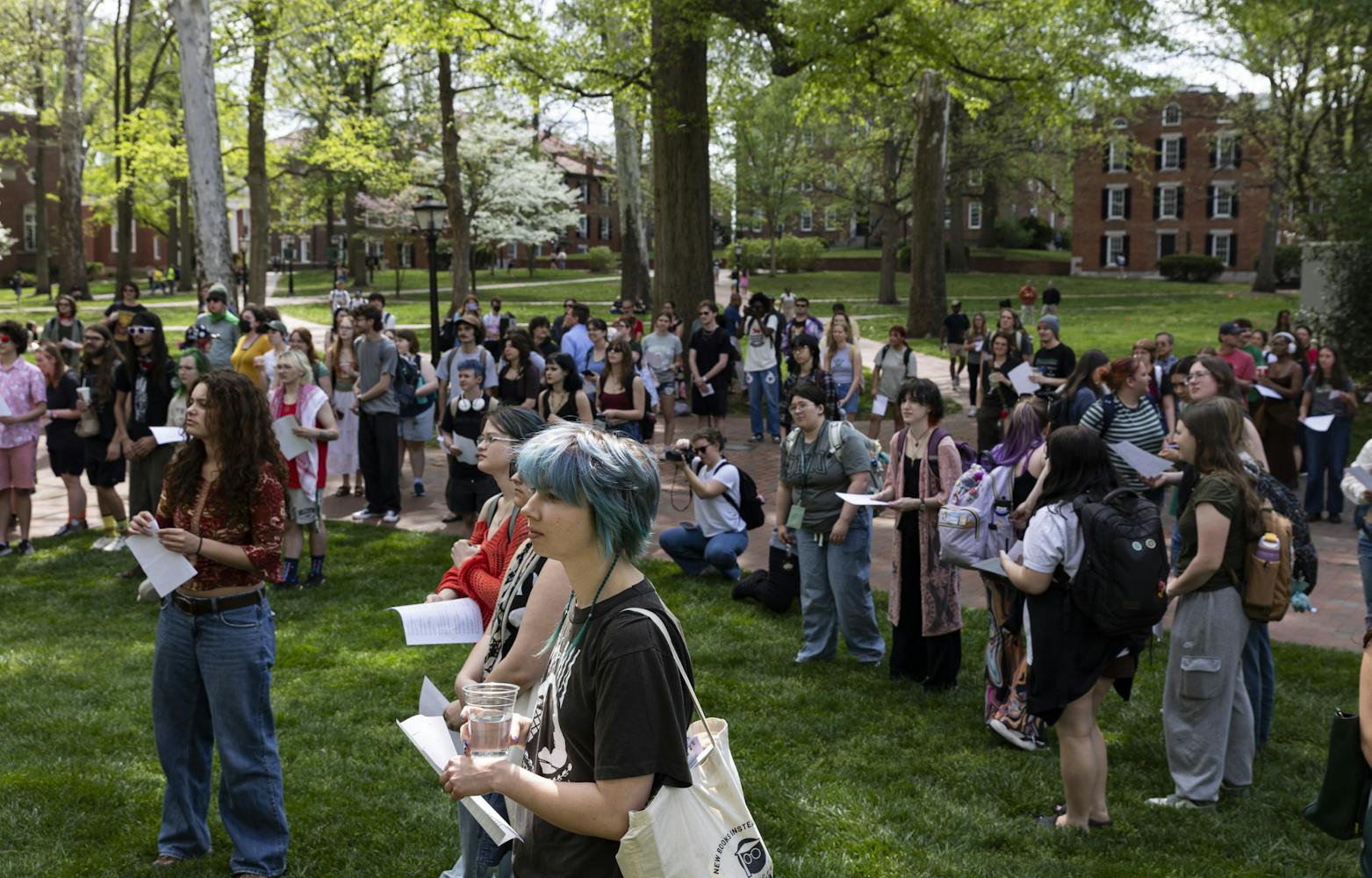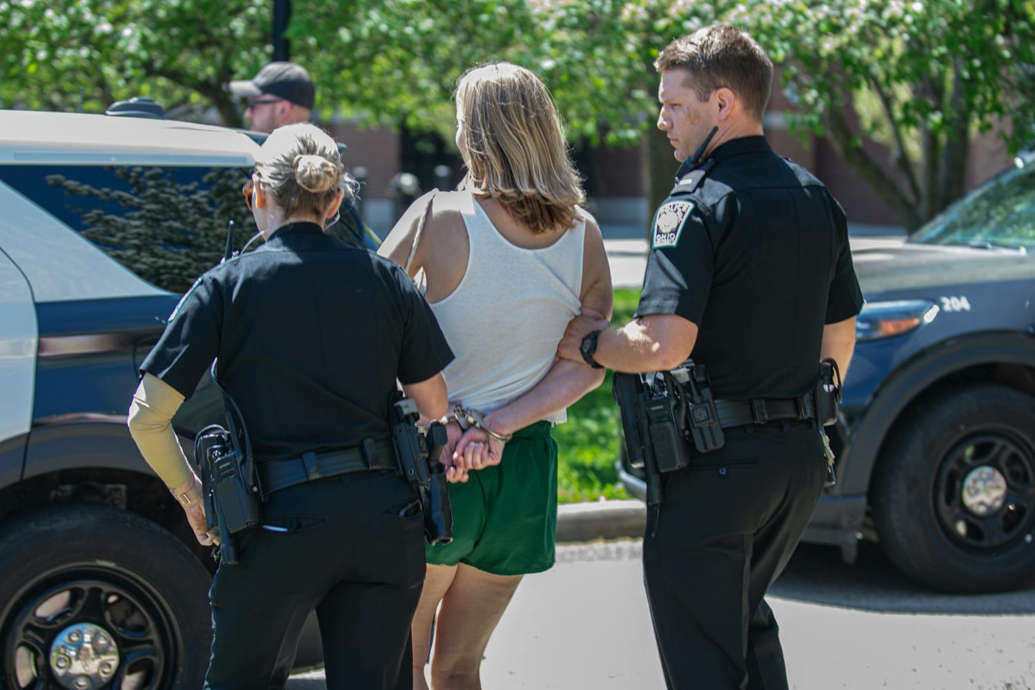 Hundreds of Ohio University students gathered on College Green on Thursday for a walkout protesting what organizers described as administrative inaction on student and faculty concerns. Two students were later taken into custody by the Ohio University Police Department and released.
