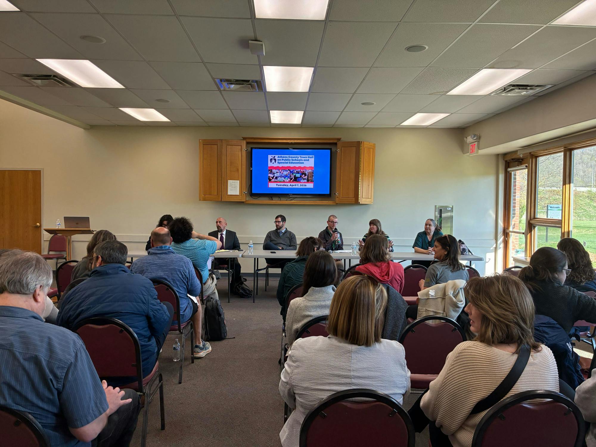 A panel discussion followed, featuring DeNoia; Athens City Schools Superintendent Chad Springer; Treasurer Jared Bunting; Plains Intermediate School teacher Gabe Miller; Ohio University professor emeritus Pam Beam; and Lucy Schwallie, senior staff attorney at the Athens office of Legal Aid of Southeast and Central Ohio.