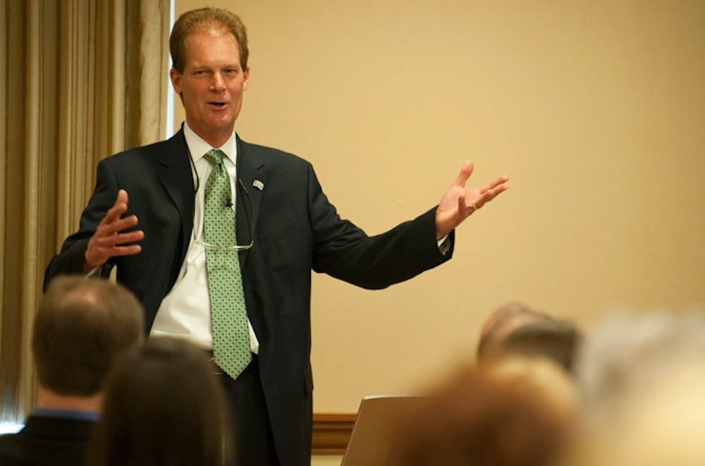 Bryan Benchoff, Vice President for University Advancement, gives a talk on philanthropy April 14, 2011 at the Multicultural Center in Baker University Center. Benchoff was named to his position Tuesday and will begin work July 15. (Erin Corneliussen | Picture Editor)