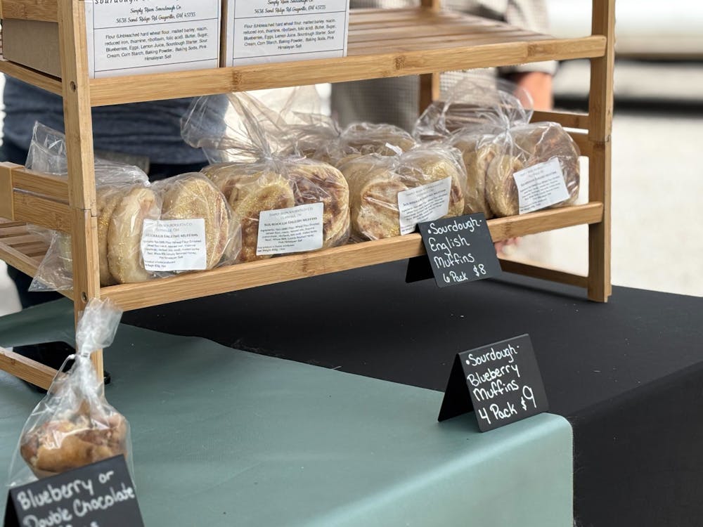Baked goods sit on the table of Simply Risen Sourdough Co., June 25, 2025, at the Athens Farmers Market at the Athens Community Center on East State Street.