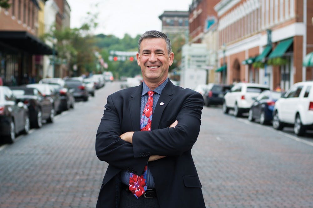 Athens Mayor Steve Patterson poses for a portrait on Court Street on Sep. 10, 2015.