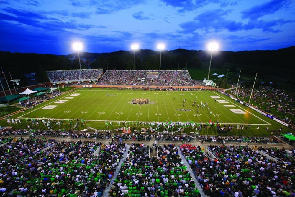 Ohio bobcat fans pack the stands at Peden Stadium Sept. 17 while Ohio plays Marshall in the Battle of the Bell. Peden stadium was dedicated in 1929, and remains the oldest Mid American Conference stadium in use. (Ohio Athletics | Provided)