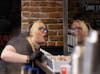 Kaleen Girmam, the general manager of Mac Shack, talks to a customer.