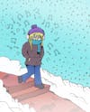 Reagan Mullikin waves at a friend passing by as she waits in line for the new Keystone Mac Shack to open on Court St. on Monday, Jan. 16, 2022.